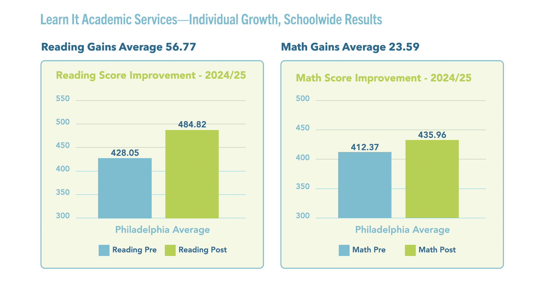 *Based on 2024–25 school year assessment data from Philadelphia nonpublic schools receiving reading and math Learn It services.